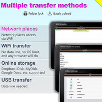 - Multiple transfer methods available! Not only can you transfer files via WiFi and USB, but you can get files exchanged with Dropbox, iDisk(MobileMe), GoogleDocs, myDisk, etc.