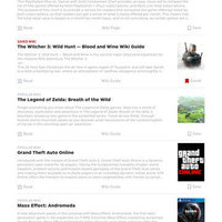 - Wiki guides and walkthroughs -- In-depth support for getting through The Legend of Zelda, Mass Effect Andromeda, Grand Theft Auto, The Witcher 3 and more