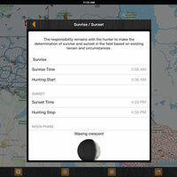 - Use the sunrise / sunset calculator to look up legal hunting light at your location or a waypoint location (works offline)