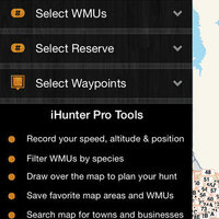 - In-app purchase to add the iHunter Pro Tools (Search for WMUs by number, filter WMUs by species, search the map, most recently viewed list, favorites list, draw over the map and save in a waypoint, track your position, speed and altitude)