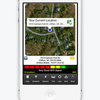 Your current address is always shown with the map. Various views such as globe, street, your level, hybrid, road map and satellite can be shown. Pinch and swipe controls for zooming and panning the map. Use full-screen mode or print map using AirPrint. If available, the temperature is shown with the address. Detailed weather is also available at any time.