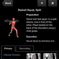 2. Select an exercise and you'll be shown an animated 3D model performing that exercise.  You'll also see a written detailed description of how to perform the exercises.  Primary and secondary muscles targeted will also be highlighted.