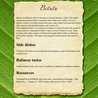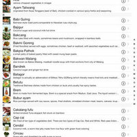 Want to know what dishes to expect when you try Indonesian food? This reference of popular Indonesian foods can ease your mind (and your stomach) by providing you very valuable information before you decide to put something unknown in your mouth. This is great for parties, travel, reference and fun!