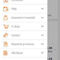 From the application you have access to: current accounts, savings accounts, credit accounts, ING insurances, send IBAN by e-mail, make transfers in Lei (transfers to new beneficiaries, transfers between your accounts, utility payments, payments to MyPayments beneficiaries), exchange rates and foreign exchange, Scan&Pay (scan and pay bills), fast payments between two users using QR code, phone recharge, vignette, transaction history (with advanced search option), pending transactions, Find ATM and ING Bank offices, PUSH alerts, Contact ING.