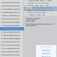 GRÁTIS e sem compromisso você pode testar (uma lição) como a aplicação funciona e o que está incluído no curso. Para iniciar seu estudo basta comprar diretamente da aplicação as gravações de áudio para as lições selecionadas por você ou pode comprar logo o curso completo. Caso comprar o curso completo pelo preço mais vantajoso, você ganha também todas as lições de bônus que não são acessíveis de outra maneira.