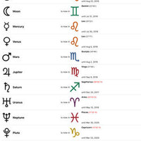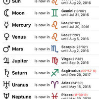 • the planet's direction of movement (if it is retrograde, a "R" will be displayed next to the degree and it will be colored in red).