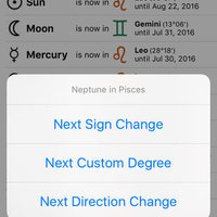 5) Go to Next Custom Degree for a planet - very useful to check transit moments or planet returns.