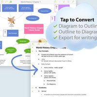 Create concept maps, cause and effect diagrams, process flows, family trees and more! Getting started couldn’t be easier: Simply double tap a blank space on your canvas to create a new idea symbol. Start from scratch or from one of the many built-in templates in language arts, history, science or thinking & planning!