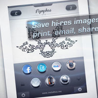 The resulting designs can be saved as a Hi-Resolution image to the Camera Roll, shared via Twitter, Facebook, Flickr, Instagram or email. Advanced functionality includes instant printing via AirPrint, saving as a .png to the application folder, and transmitting the tattoo design screen to any external computer or device via the built-in Wi-Fi server.
