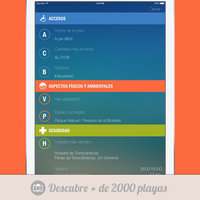 - Ratings, which shows ratings, reviews and photos of the beach shared by users of the app. This is the section you can help grow by rating the beaches you know, writing reviews or uploading photos to share them with other users. (In order to send your ratings you must first login to your iPlaya account. Registering is super quick and easy!)