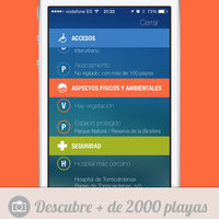 With iPlaya+ you'll have a thorough guide to all Spanish beaches, including all their features and services available in them, accurate hourly weather forecast, and users' reviews and photos to help you make your choice.