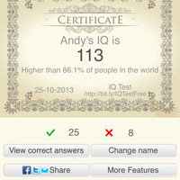 2. After you finish the test, you will receive a certificate of your IQ and the global ranking.