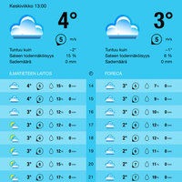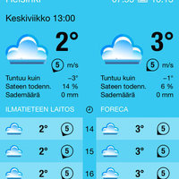 Vertaile Ilmatieteen laitoksen ja Forecan sääennusteita rinnakkain.