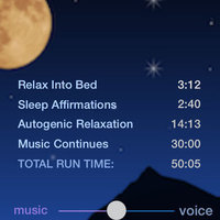 “As a nurse I have told my patients about this wonderful option for insomnia!” (Review) -- Drift off to sleep and sleep more deeply with a wide variety of guided meditations. Create your own sleep program using a Playlist feature which allows you to listen to up to six meditations in one session. Listen voice alone or voice with music or nature sounds, choosing how long the background will continue after the voice guidance stops. If you prefer to listen to music or nature sounds alone, a Sound Mix feature allows you to listen to a combination of music plus a nature sound, or two nature sounds together.