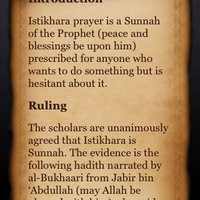 Are you at times unsure what may be the right decision to make? Seek divine guidance using the prayer taught by Prophet Muhammad (peace be upon him). This application provides the method of performing Salat al-Istikhara (the prayer of guidance in Islam). It provides the Arabic du'aa, transliteration, translation and audio for Istikhara.