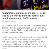 Show-ul care demonstrează că imaginaţia românului nu are bariere! Delia, Cheloo şi Bendeac premiază cel mai bun număr de umor cu 20 000 de euro.