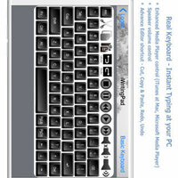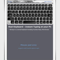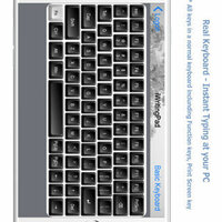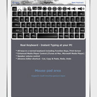 - "Real Keyboard" function provides direct typing at PC. In-App purchase offers additional Function keys (F1-F12), Editing control keys (Cut & Paste), iTunes controls (Apple OS X) or Media Player controls (Microsoft Windows), Rhythmbox Music Player (Default player for Linux), Speaker Volume control.
