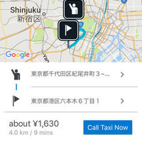 ・Fare calculation depends on the calculated route done by Google Map Service. Therefore, actual route may vary. Furthermore, fare estimate does not include other fees such as toll fee, radio dispatch fee, and/or reservation fee.