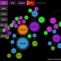Jasuto uses the relative position of nodes and their connections to control the sound. So the scene not only represents the synthesis structure, but also a custom multi-touch control surface. Motion can be recorded per node giving you rich, flexible automation.
