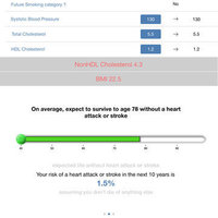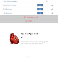 There are a number of different ways to show the patients’ risk, such as a ‘heart age’ screen (shows the age of the patients’ heart) and a ‘healthy years’ screen (shows the expected life years of a patient). These screens can highlight the steps, both lifestyle or drugs, that could be taken to reduce an individual’s risk of cardiovascular diseases (interventions).