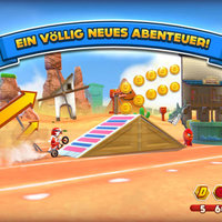 Wear the cape of the World’s Most Determined Stuntman, and take your trusty motorbike on a wild ride from zero to hero! Race, ride and defy death as you jump buses, dodge giant mousetraps, leap tanks full of sharks and reclaim your title of Master of Disaster! Swipe Joe to pop a wheelie, flick obstacles out of the way, tap to jump, hold down to crouch and waggle to fight sharks!