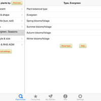 * Plant Finder – look up plants by searching for criteria, for botanical or common name, or browsing groups of plants. Add plants you like to your Favourites.