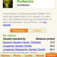 * Plant sellers – a new feature is under way to show nearby ‘Sellers’ who stock each plant when it is in season. We add new ‘Sellers’ throughout the year.
