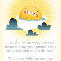 In this adventure Jubitron and her friends Mr. Alligator and Little Birdie decide to go on a lovely little picnic. But when their picnic is interrupted by a rain storm, Jubitorn has a bright idea and with the help of her friends (and a rocket ship) they save the day and make a new friend while they're at it.