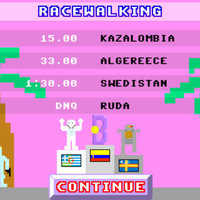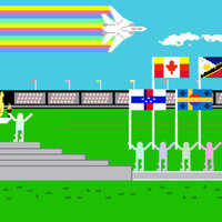 Compete in the ultimate test of strength! endurance! and skill! For up 4 players! Go for Gold in 15 events: * Diving * Javelin * Equestrian * 100m Dash * Rowing * Gymnastic Rings * High Jump * Pole Vault * Weightlifting * Swimming * Racewalking * Hammer Throw * Cycling * Archery * Whitewater Slalom