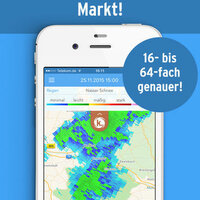 Bis jetzt waren App mit Niederschlagsradar eine pixelige Angelegenheit - meist kann man aus gutem Grund gar nicht in Städte und Landkreise zoomen, weil bei der üblichen Auflösung von 1 bis 2 Kilometern alles keinen Sinn ergibt. Unsere App bringt zum ersten Mal eine Auflösung des Wetterradars von bis zu 250 Meter - deswegen können Sie bei uns getrost nachsehen, wo es genau am stärksten hagelt, regnet oder schneit, auch wenn Sie in einer Stadt wohnen.