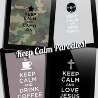 Including the original KEEP CALM AND CARRY ON as well as parodies for soldiers, moms, kids, musicians, athletes, runners, girls, guys, geeks, and many more!
