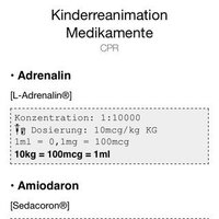 Zu jedem Medikament ist die Dosierung für Kinder „pro ml“ sowie für „10kg PatientenInnen„ rasch abfragbar.