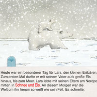 Lars erwacht vor deinen Augen zum Leben und entführt dich mit in seine weiße Welt. Wobei auch er tatsächlich entführt wird – von einer Eisscholle, die sich einfach ablöst und Lars davonträgt, weit weit weg von seinem Vater und der ihm bekannten Welt. Er trifft viele komische Tiere, von denen er noch nie vorher gehört hat. Und er findet neue Freunde, die ihm helfen. Ob er es am Ende wohl schafft, wieder zu seinem Vater zurückzufinden? Lies am besten selbst nach!