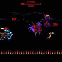 Witness the horrifying adventures of a mysterious suit of armor known only as "The Knight." Armed with a mighty sword and equipped with blood-red wings that allow flight, the Knight desperately races through the countryside, never stopping for any respite or consideration. He must face and vanquish a never-ending onslaught of bloodthirsty ghouls, flaming skulls and unspeakable horrors while jumping over spiked pits and flying through small gaps. If he takes three hits or allows three enemies to pass, it’s "Game Over!"