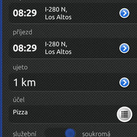 - Po ukončení jízdy načte polohu zastavení a požádá o zadání účelu jízdy.