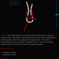 Each 3D knot has detailed reference information including tying pointers, strength and reliability, structural info, and Ashley reference numbers (ABoK) and occasionally the history behind the knot.