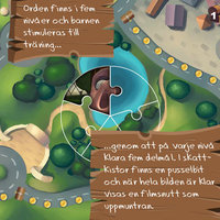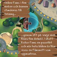 I de olika spelen får barnen lyssna på bokstavsljud, skriva och läsa. Orden finns i fem nivåer och barnen stimuleras till träning genom att på varje nivå klara fem delmål. I skattkistor finns en pusselbit och när hela bilden är klar visas en filmsnutt som uppmuntran. På tio minuter kan barnen på ett lustfyllt sätt skriva 50 ord/nivå. Till alla ord finns animerade bilder.