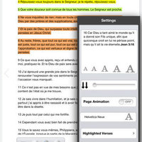 We are happy to offer French Bible, Louis Segond 1990 with audio for your apple devices. Offered side by side with KJV English version,utilizing the power of apple device for French speaking community.