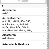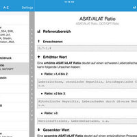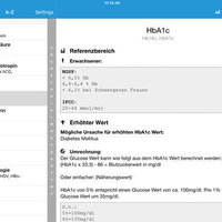 Diese Laborwerte App gibt sowohl Medizinern als auch Nichtmedizinern einen allgemein verständlichen, schnell navigierbaren und übersichtlich aufgebauten Überblick über die wichtigsten Routinelaborparameter und mögliche Ursachen über deren Erhöhung und Senkung. Die Laborwerte sind sowohl alphabetisch im Menüpunkt A-Z angeordnet als auch unter den betreffenden Kategorien auffindbar. Die Normwerte werden sowohl in den alten Einheiten als auch SI-Einheiten angegeben.