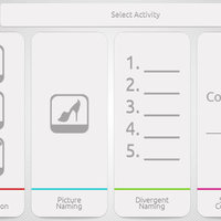 Activities include: Picture Identification, Picture Naming, Divergent Naming, and Sentence Completion.