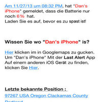2.) Email Alerts - in the event of a dying battery, the app will send out an email with last known GPS coordinates. Choose up to 3 email notifications (20%, 10%, 5% etc.,) Open the email on a computer, click the link and see the location of the device on a map.