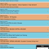 This app will provide Pilots, Cabin Crew, Engineers and Ground Crew with the latest aviation jobs and news in the market. The app works like a job alert, once a job matches your selection you will receive a notification on you mobile device. The app will allow you to view jobs that match your selection. It will also allow you to apply for jobs. To access this app you must create an account through our website and become a premium member.