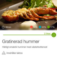 - Appen räknar automatiskt fram andelen kolhydrater, protein och fett i varje recept.