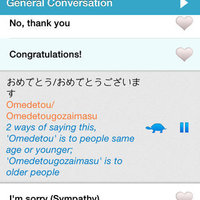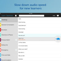 "Great for learning basic japanese, just wish more word translations could be added.The app is so use friendly, & i looove how no wifi is needed in order to use the app!!Translated words r spoken, written (in english & in japanese!) & can even be spoken at a slower pace. Translated words r organized & easy to find."