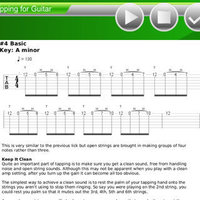 Tapping techniques covered in the lessons include speed arpeggio and scale runs, 6 string tapping licks, tap slides, tap bends, tap trills and tapped harmonics.