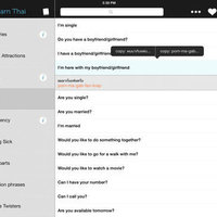 Learn Thai HD is an easy to use mobile Thai phrasebook that will give visitors to Thailand and those who are interested in learning Thai a good start in the language. Learn Thai is developed by Thai people and we have tried our best to be authentic in the pronunciation whilst ensuring it is easy to understand. We use native Thai speakers and have spoken clearly and slowly to help you follow the phrases with ease.