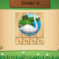 Here the purpose is to place the letters in the right order but without the visual help. However pushing on the picture, Billy will tell the kid the correct word.
