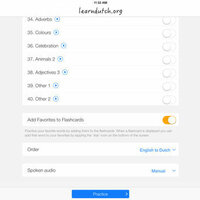 A flashcard-app, to the Dutch vocabulary course for beginners "1000 most common words in Dutch", developed by Bart de Pau. The free video lessons, vocabulary lists and exercises, you can find on the website of learndutch.org. This flashcard-app is an extra paid on-the-go solution, for those who want to learn the words more efficiently. You can choose which lessons you want to practice and you can add difficult words to a "favourite" list for extra rehearsal.