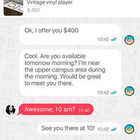 • Discuter en privé avec les vendeurs et les acheteurs sans quitter l’application, afin d’acheter, vendre des articles et négocier les prix.