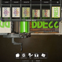 LetterMpress gives you the experience of producing your designs on a letterpress — placing and arranging type on the press bed, inking, and then turning the hand crank to make a print.
